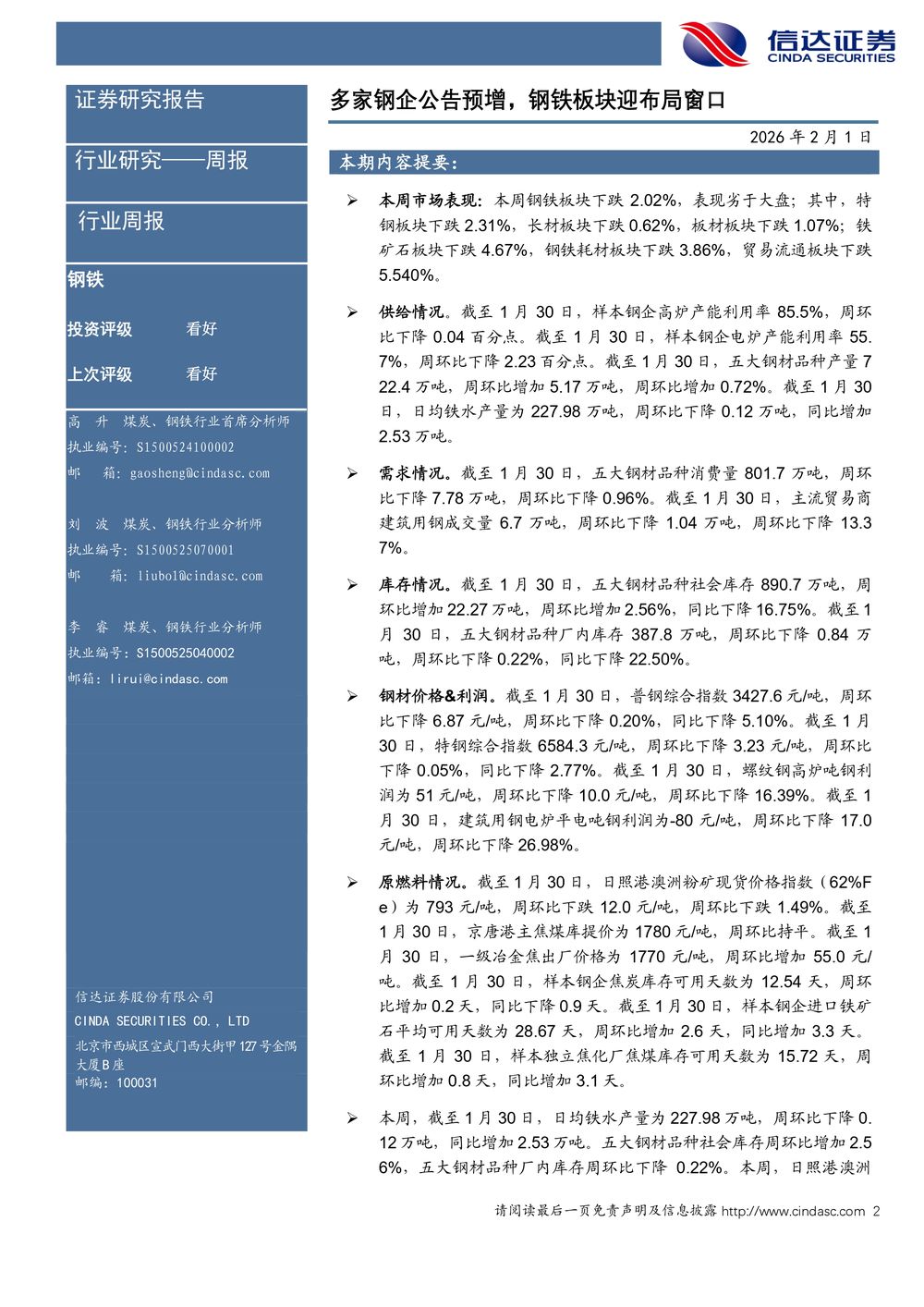 【信达证券】 多家钢企公告预增,钢铁板块迎布局窗口
