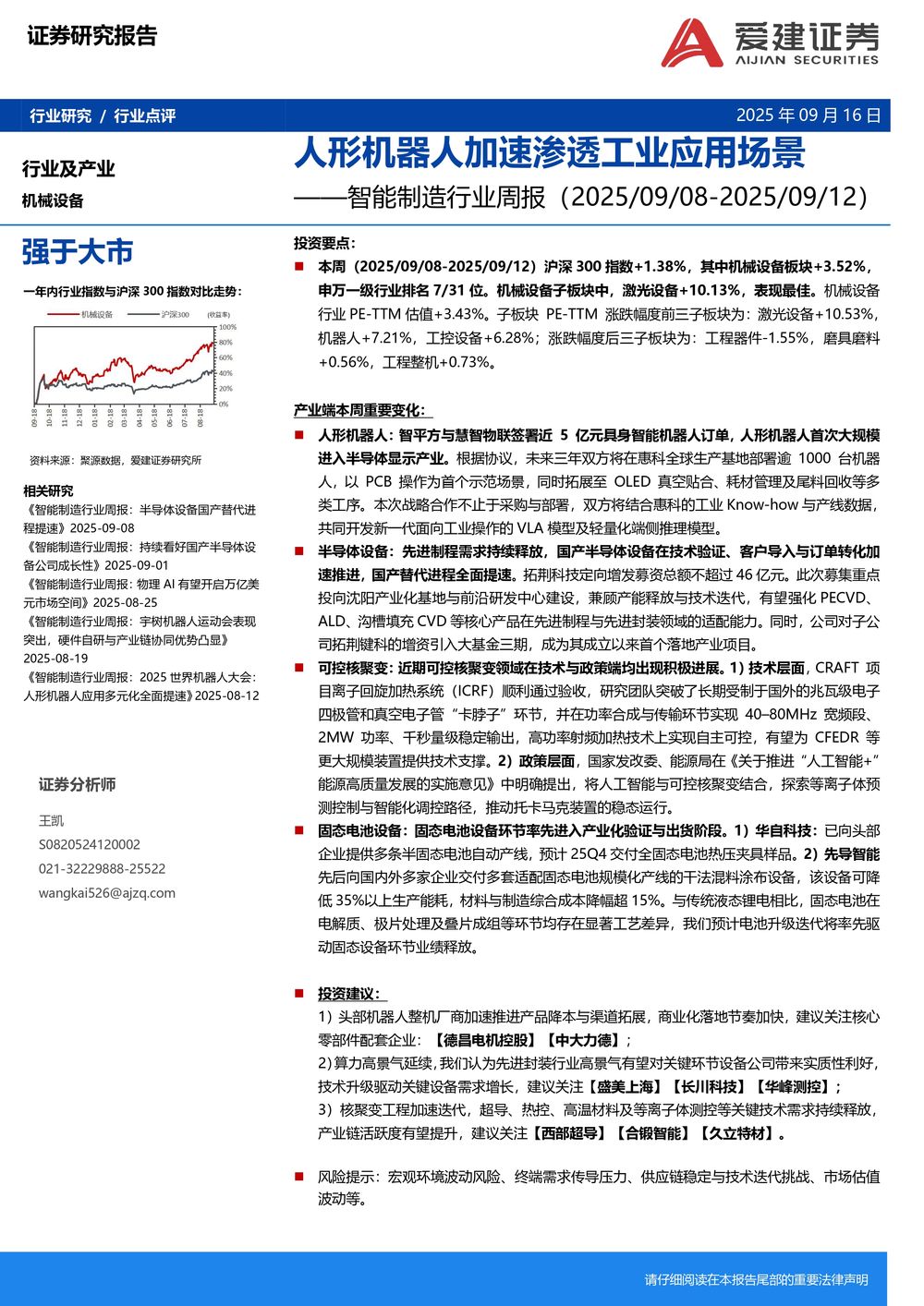 【爱建证券】 智能制造行业周报:人形机器人加速渗透工业应用场景