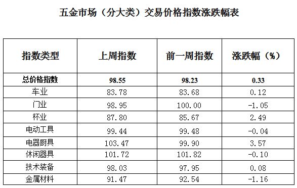 一、五金市场交易周价格总指数概述