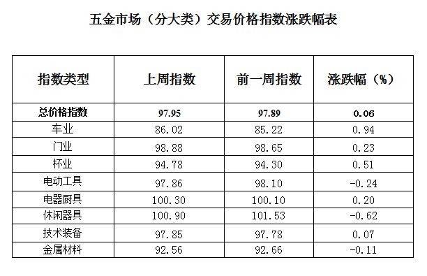 一、五金市场交易周价格总指数概述