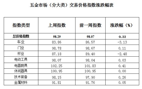 一、五金市场交易周价格总指数概述