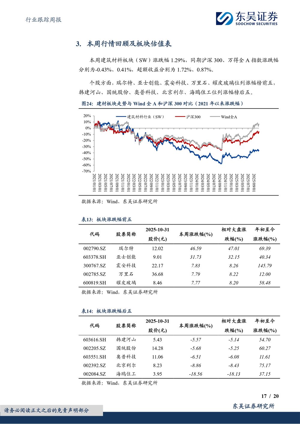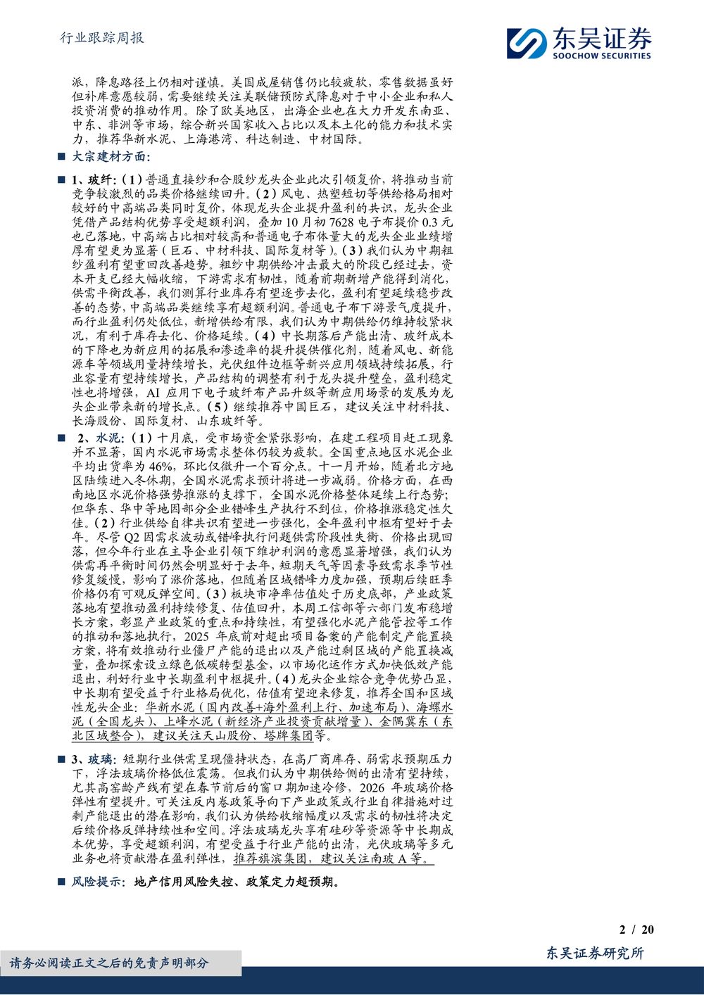 【东吴证券】 建筑材料行业跟踪周报:未来一年全球贸易形势有望稳定,关注出口产业链