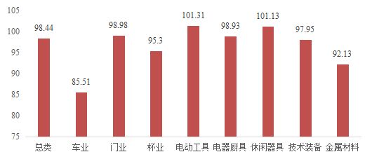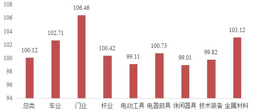 截至2025年9月,永康五金外贸价格指数收于100.12点,环比上涨3.77点。与8月相比,电动工具和技术装备行业环比上涨,其中,电动工具行业涨幅最大,环比上涨10.86点;车业、门业、杯业、电器厨具、休闲器具和金属材料行业环比下跌,五金八大行业呈“两升六降”格局。