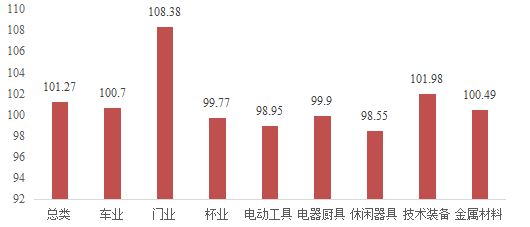 截至2025年9月,永康五金生产价格指数收于101.27点,环比下降0.17点。与8月相比,车业、门业、杯业和电动工具行业环比上升,其中,门业行业涨幅最大,环比上涨2.53点;电器厨具、休闲器具、技术装备和金属材料行业均环比下降,五金八大行业呈“四升四降”格局。