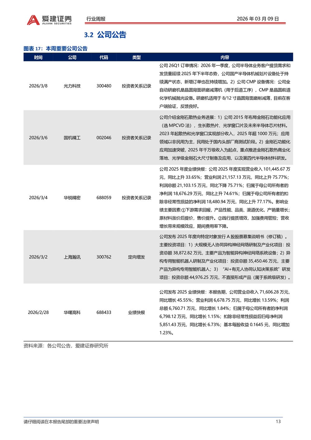 【爱建证券】 智能制造行业周报:持续看好半导体设备零部件国产化替代