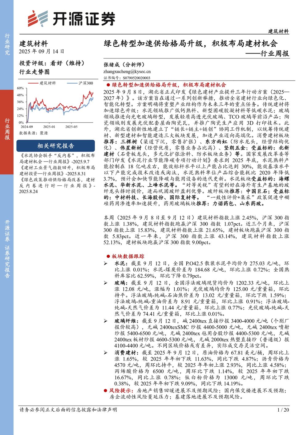 【开源证券】 建筑材料行业周报:绿色转型加速供给格局升级,积极布局建材机会