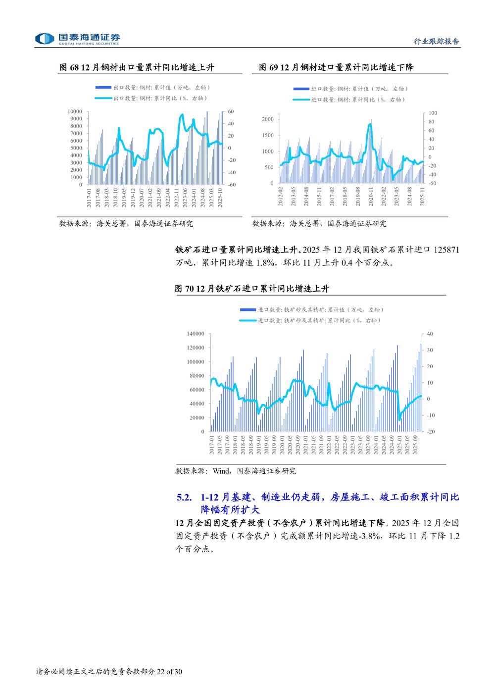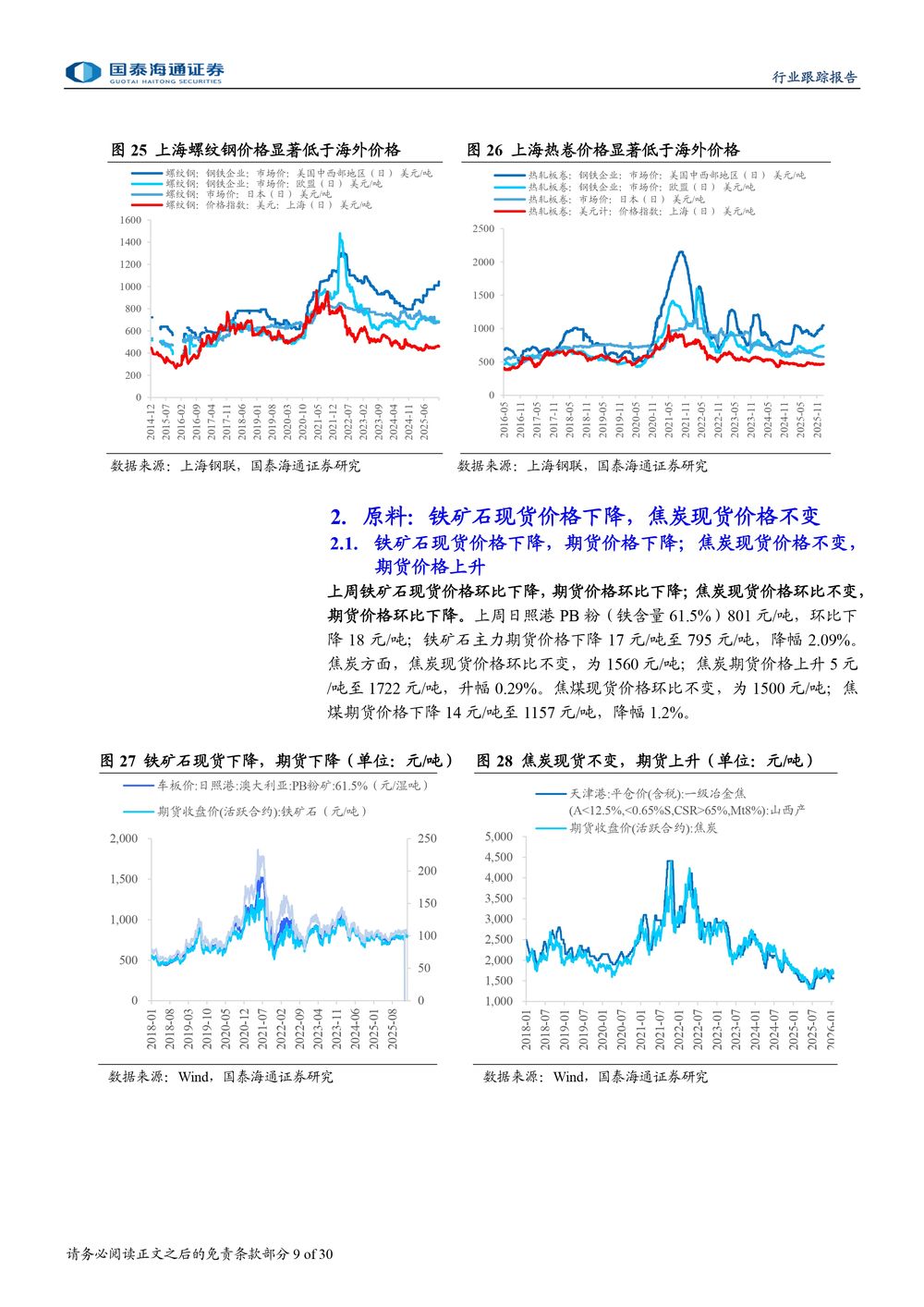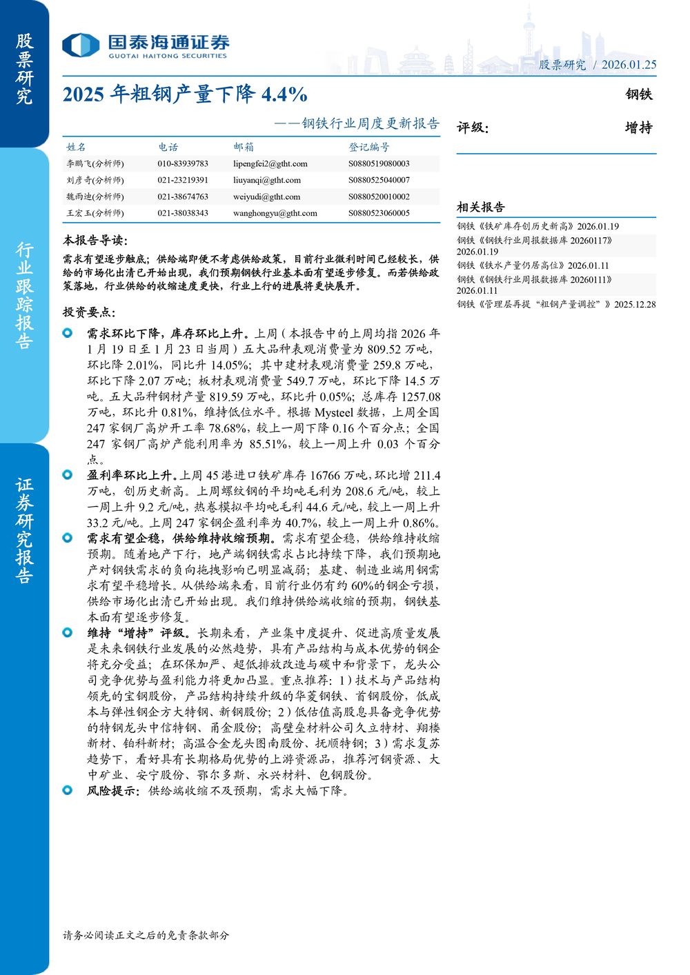 【国泰海通】钢铁行业周度更新报告:2025 年粗钢产量下降 4.4%