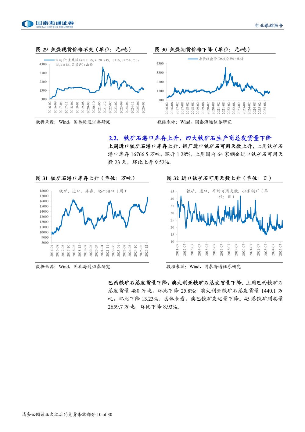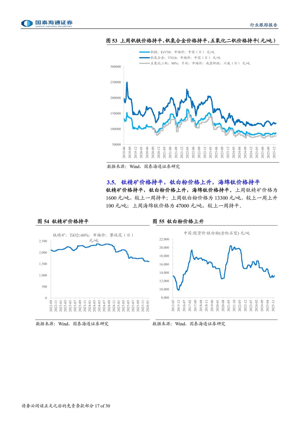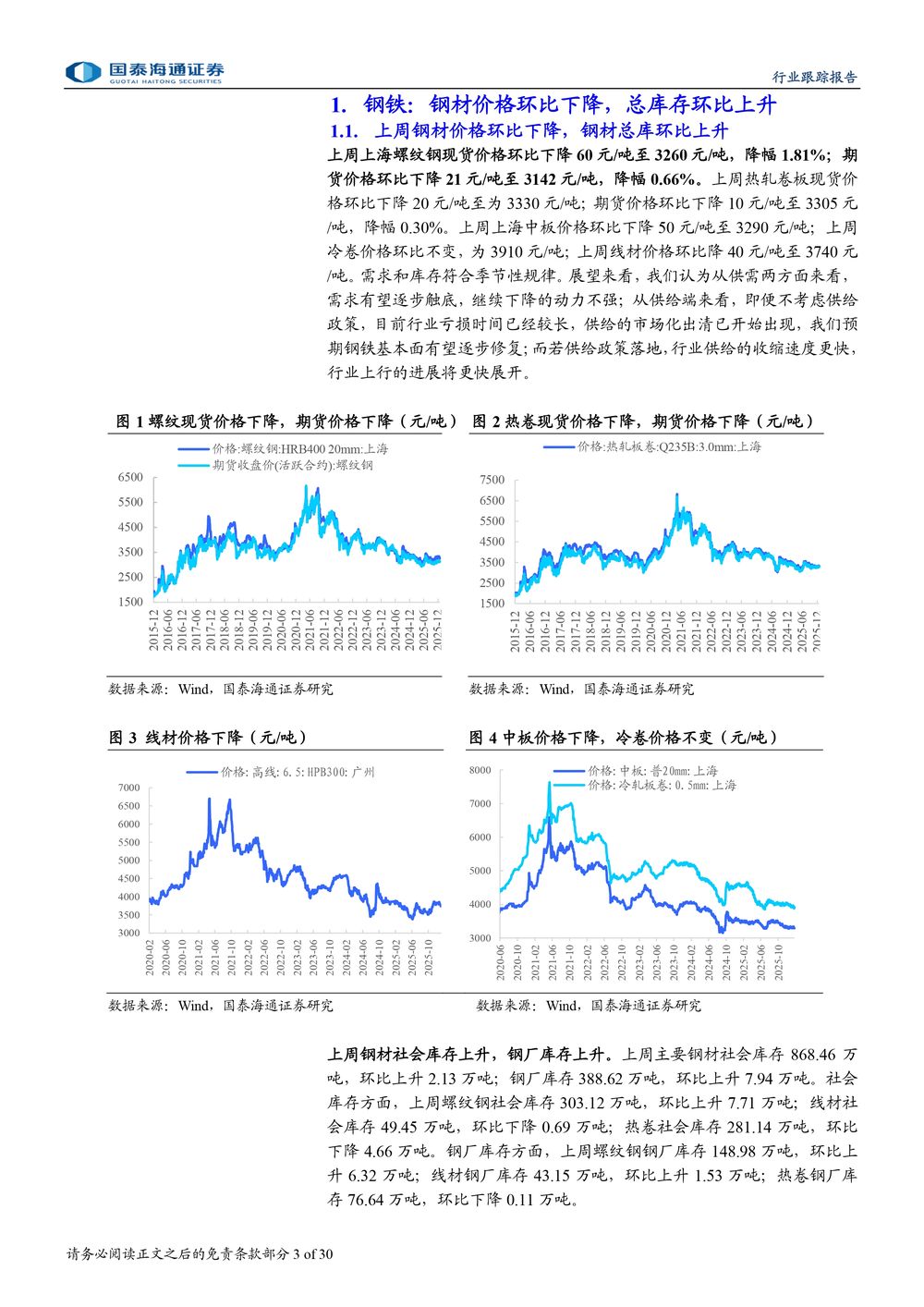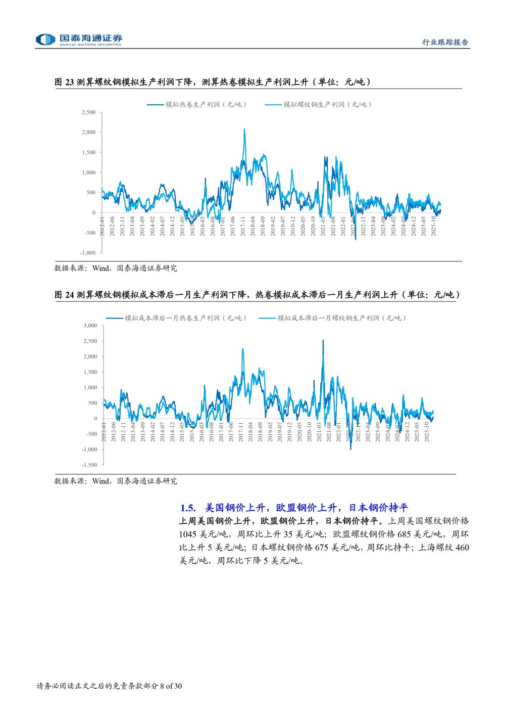 【国泰海通】钢铁行业周度更新报告:2025 年粗钢产量下降 4.4%