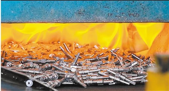 自智能热处理研究中心成立以来,我市五金产业进一步向数字化、智能化、绿色化迈进。11月20日,记者走进浙江求精科技有限公司(以下简称“求精公司”)的生产车间,只见一条条热处理生产线正有条不紊地运转,工人们熟练地将各式各样的五金工具零部件进行热处理加工。这些经过热处理的零部件,将成为各类五金产品的核心部件,应用于星月、德硕、东立、华丽、皇冠、博来等多个知名品牌的产品中。