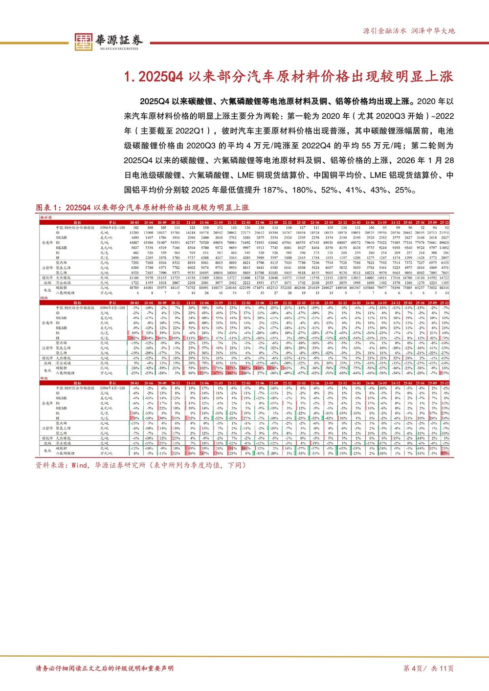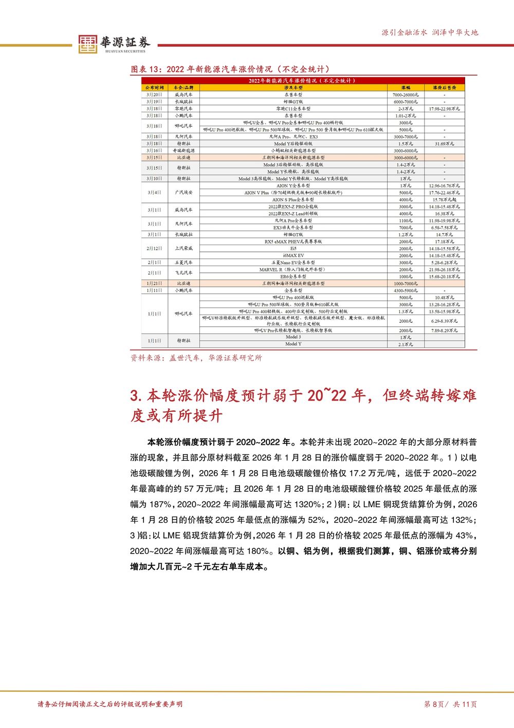 【华源证券】 汽车行业周报:主机厂原材料涨价后续影响分析